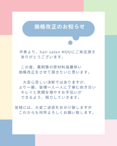 価格改正のお知らせ